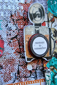 Kaisercraft Materials: Close Up – Shutter paper PI681,Picture paper PS376, Apperture paper PI682, Fisheye PI683, Collectables CT812, 6 1/2 x 6 1/2 Paper Pad PP955, Sticker sheet SS264, Texture stamps – Dictionary CS890, Printed tape – Film strip PT210, 12×12 Template Triangles T615, Mini paper blooms – Coral F667, Sea breeze F648, Derivan Matisse – Gel medium DM-1MM2M04 MM4.      Other: Gesso, mist & black ink.